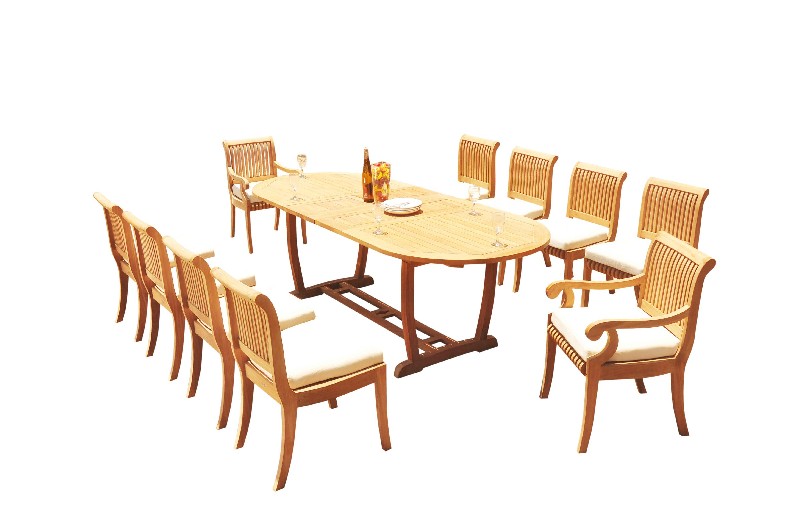 11 Pc Dining Set:118" Double Extension Mas Oval Table(Trestle Leg) & 10 Arm Chairs